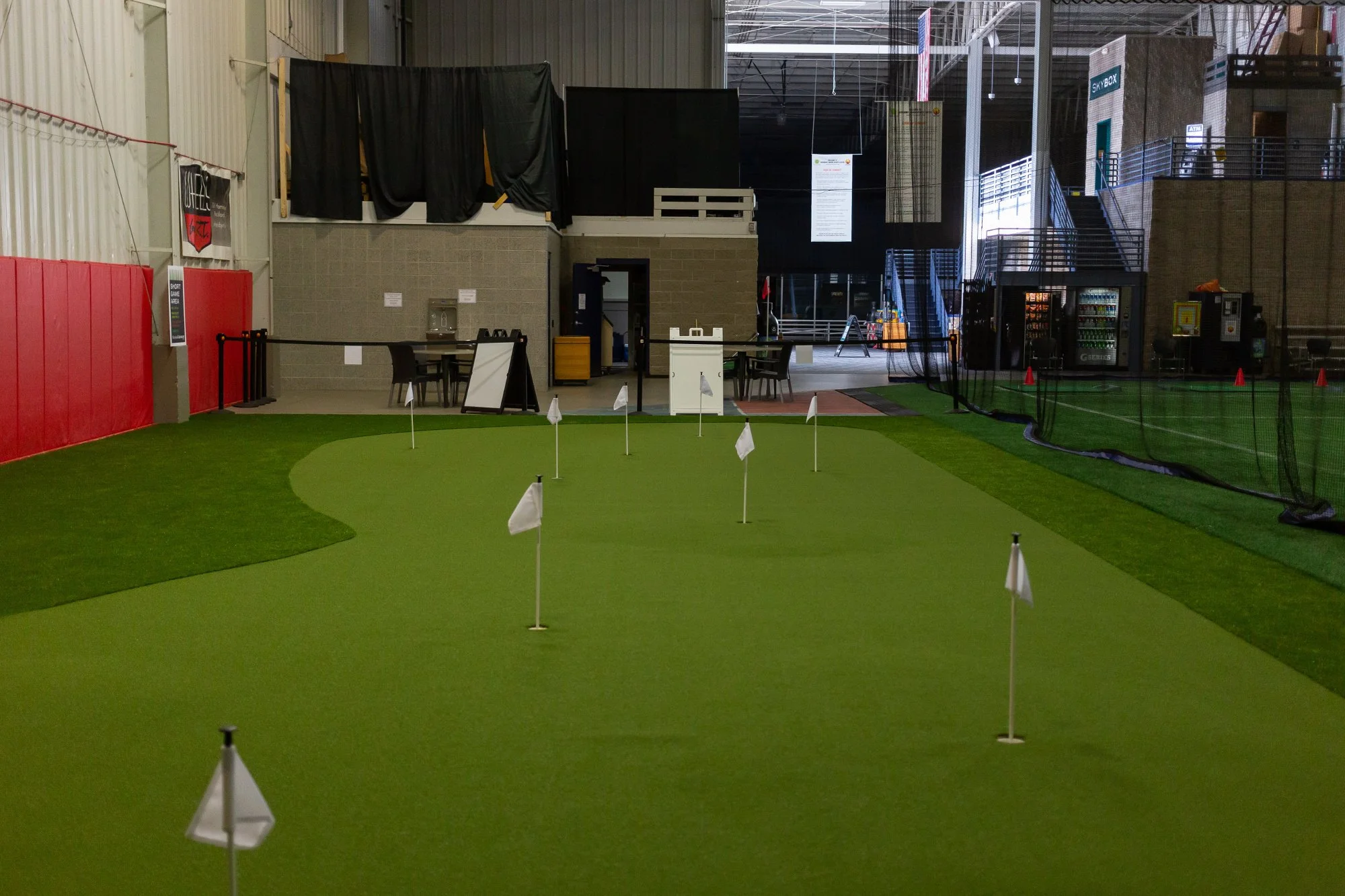 The Indoor Sports Center at Mercyhealth Sportscore Two is home to the only indoor golf practice center in the Rockford area. Our indoor golf practice center includes a driving range and a putting green to work on your short game during the winter months. Lesson programs also available.